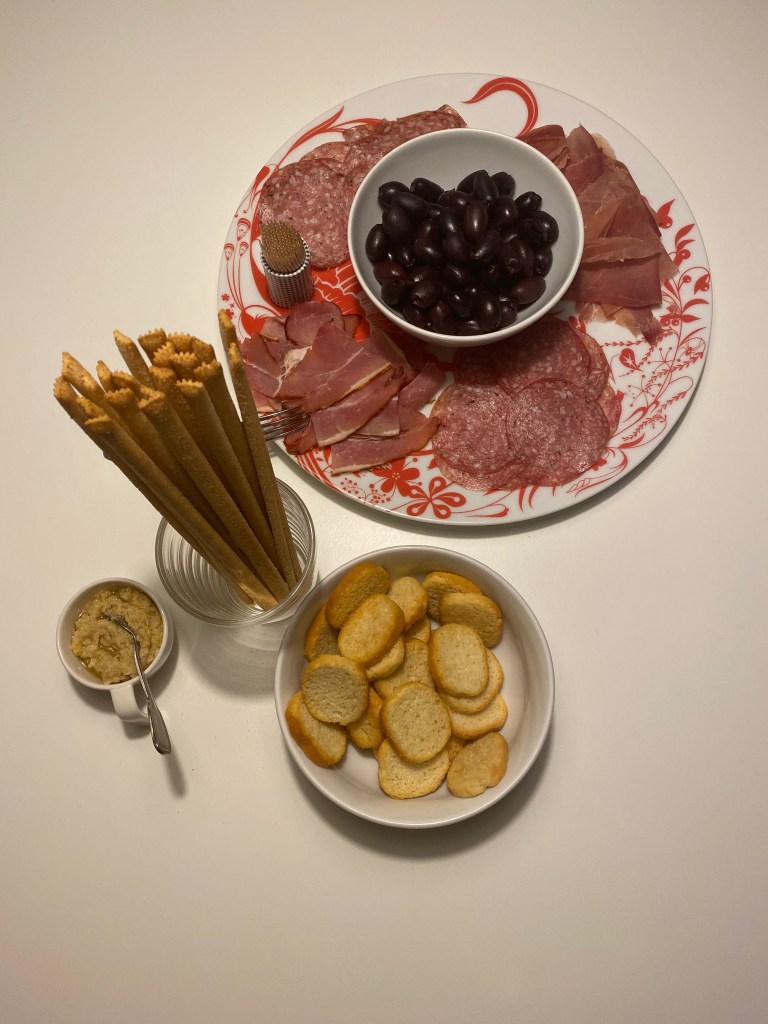 We had a lovely time playing with the children, eating lots of good food and catching up with the adults. To start we had charcuteries and nibbles in the kitchen while the chef prepared our main course.