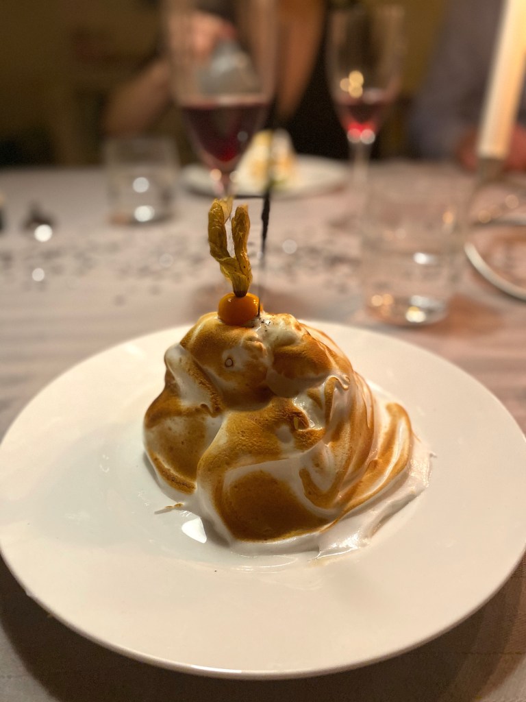 The pudding was a new version of baked Alaska, with dulce de leche ice cream inside. Recipe to come!
