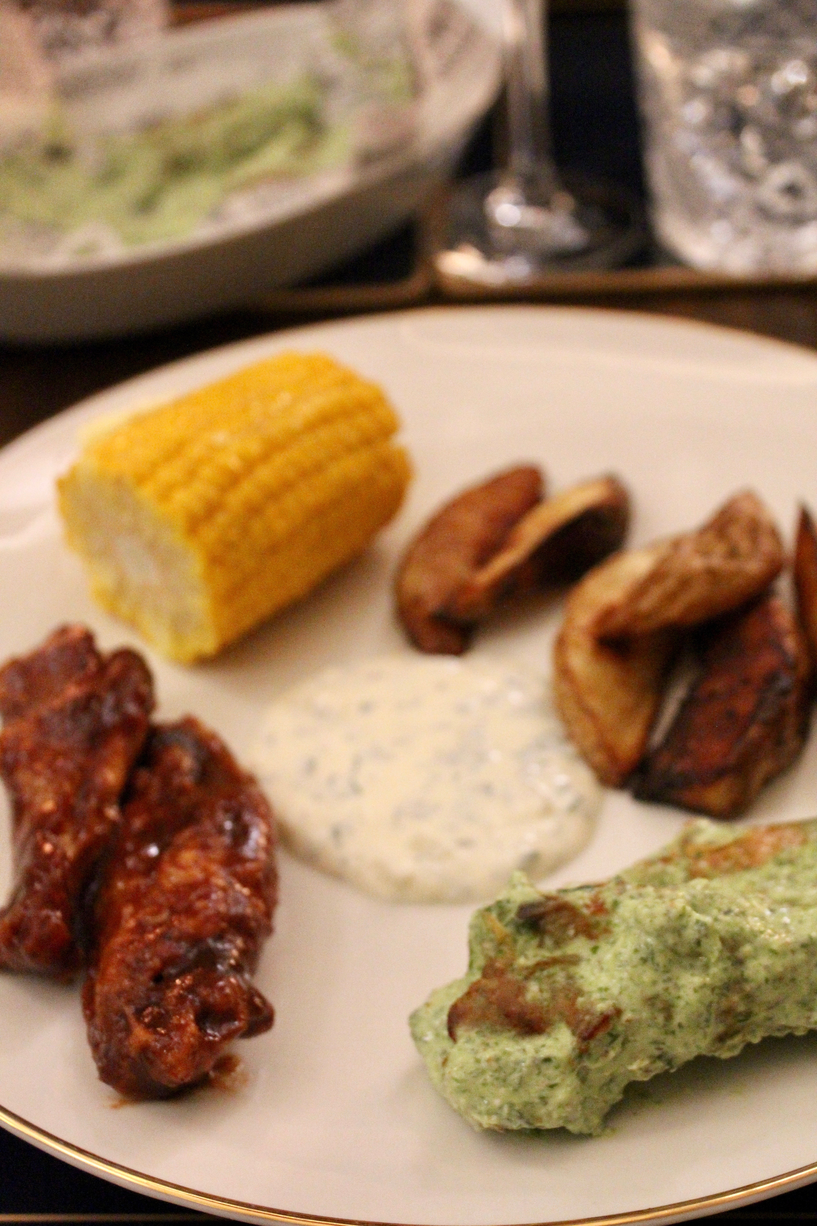 During one of my many trips to Copenhagen with my friends Daniel and Maria we had dinner at Bæst and I remember we ordered the most gorgeous chicken wings, slathered with a creamy herb sauce and topped with fresh herbs. At the time, I loved them, but their wonderful pizzas stole all the attention. But then earlier this year when I was plotting cooking chicken wings at home, I could almost recall the taste of those ones and so decided to make my own version, as I had no idea what was actually in the creamy herb sauce.