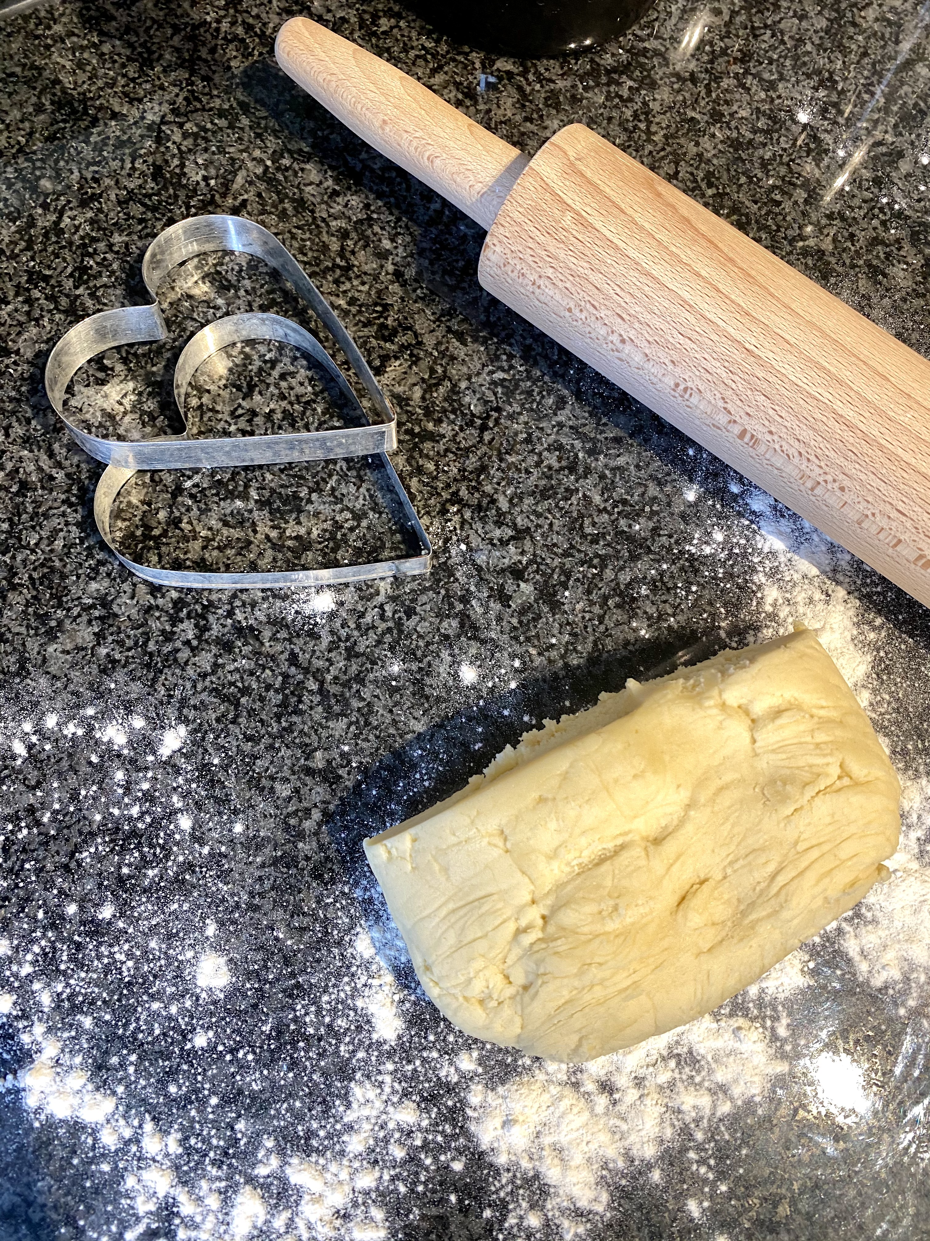 Mix wet ingredients with sugar using an electric whisk, then slowly add baking powder and flour. Refrigerate dough for 30 minutes. Roll out the dough until quite thick, approx 3 mm, use a cookie cutter to shape hearts and carefully place them on a parchment paper lined baking tray. Bake for 5-7 minutes at 190C, until still pale and soft. Leave to cool on a wire rack before icing.