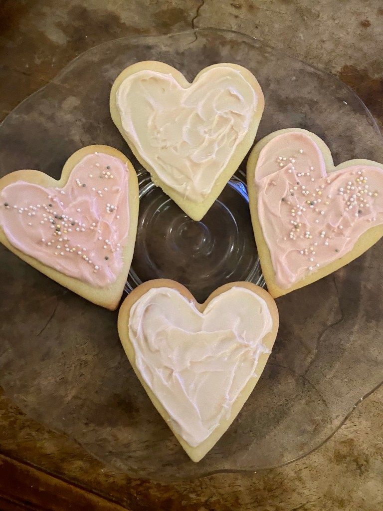 Do you celebrate Valentine’s day? I always have, but never in a big way. Last year when we were in lockdown I just cooked us a nice supper and made som heart shaped cookies with a yummy cream cheese frosting. Pink of course!