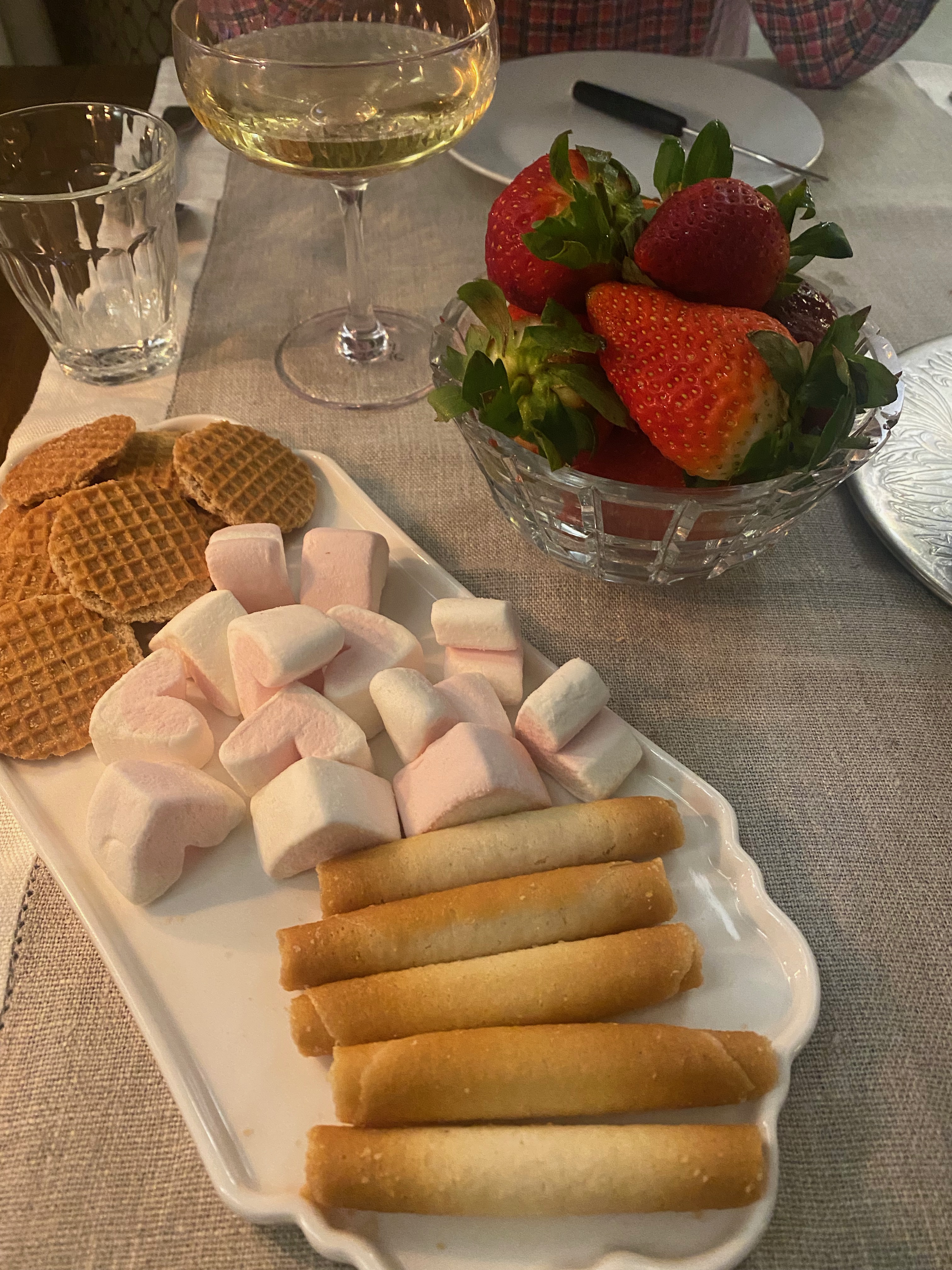 Even before my boyfriend and I lived together I would spend most weekends at his flat and obviously cook a lot in his kitchen. One day looking through the cupboards for something useful I spotted a chocolate fondue set, complete with chocolate and marshmallows. It had never been used but he knew it had been there a long time so I made sure to use fresh chocolate and marshmallows for our first chocolate fondue. I also added some crispy things like little waffles and wafer rolls to dip, and of course strawberries.