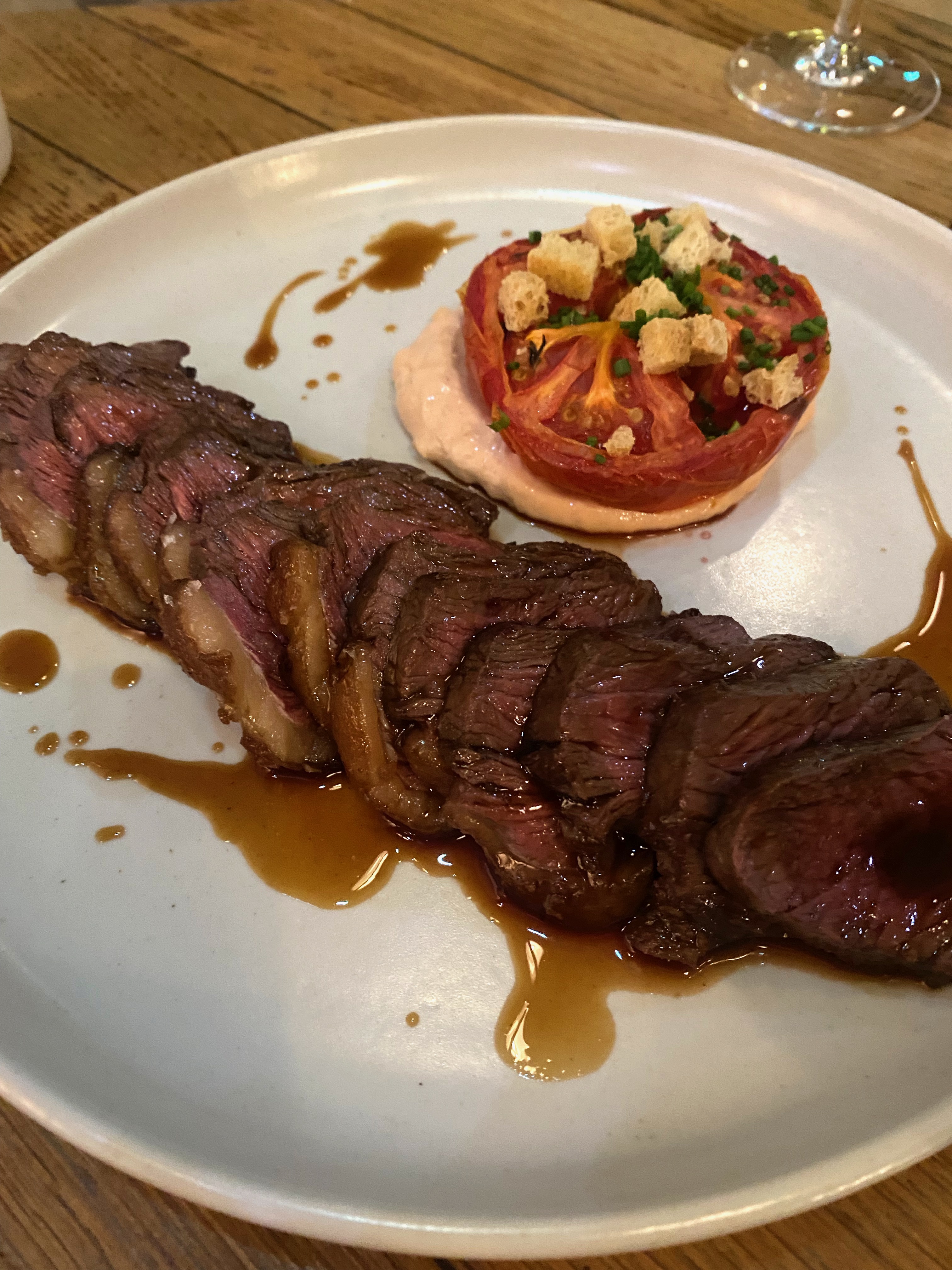 Next we had the steak that we had heard so much about! Aged picanha steak with roasted tomatoes, reuben aioli and the house rubbed chips. First of all, the portion was huge so well done to anyone who manages to eat the whole thing themselves! We shared it and that was perfect after the other three plates we had. The steak itself was perfection; full of flavour and so tender! The reuben aioli was interesting and I liked the flavour but it was a bit too “bitty” in texture for my liking. The chips were nice and crispy and very good, but I actually think I would have preferred them without the spice rub, as I felt it together with the reuben aioli took focus away from the excellent steak. But I understand the desire to jazz things up a little and make it your own. And it was very good!