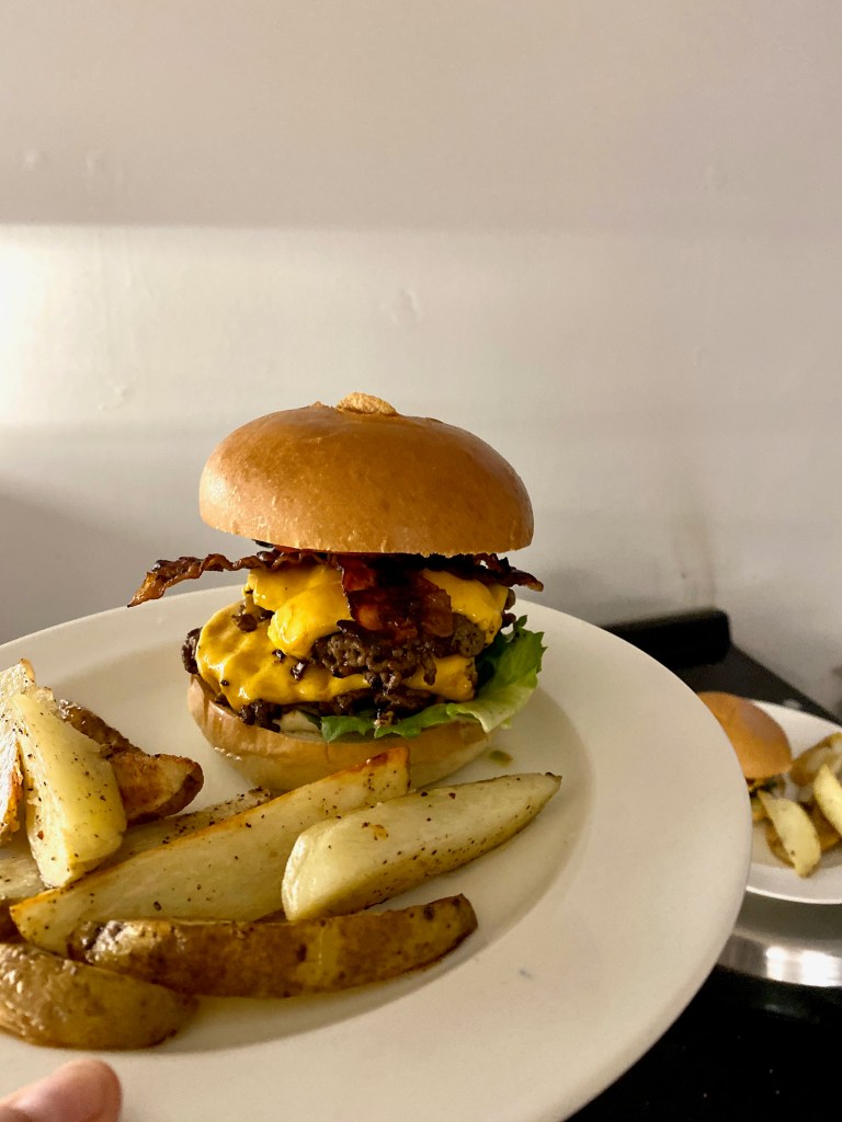 Potatoes and vegetables: I definitely prefer warm potatoes, so made potato wedges, but fries or chips would work too. I’m used to having just a salad but thought it would be fun to cook vegetables in the fondue pot as well. We had mushrooms, broccoli and peppers. The broccoli was our favourite!