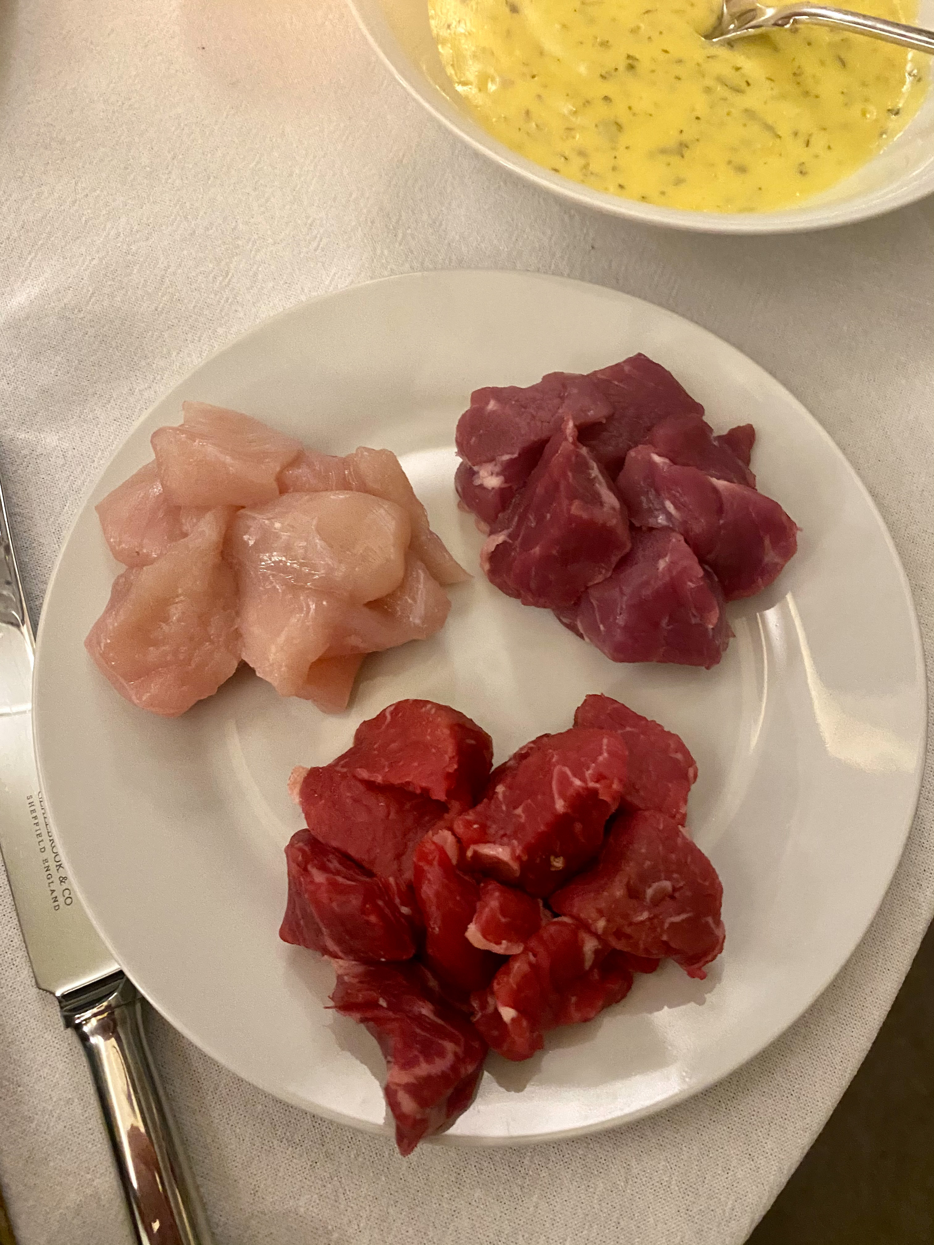 Meat: We decided on three types of meat; beef, pork and chicken, and I went for the fillet in all three cases. About 100 g of each type of meat per person, which is quite a lot, but we managed.