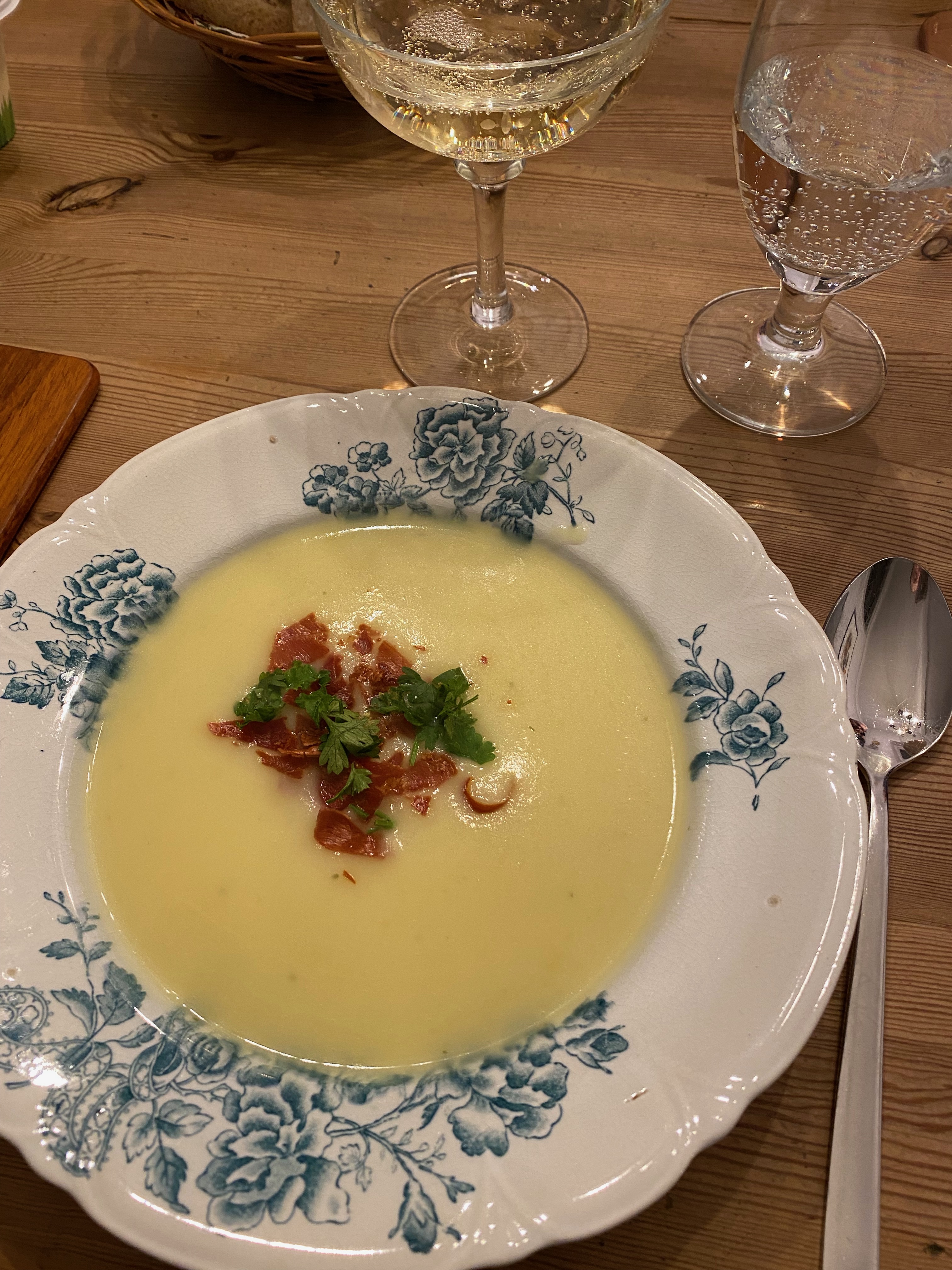 Christmas 2020, when I was in Sweden for a month (first isolating then staying with my parents) my parents and I ate so much we tried to dial it down this time, with some regular food in between the celebration dinners. And we felt much better for it! Case in point: homemade Jerusalem artichoke soup with crispy prosciutto crumbs and mamma’s homemade bread.