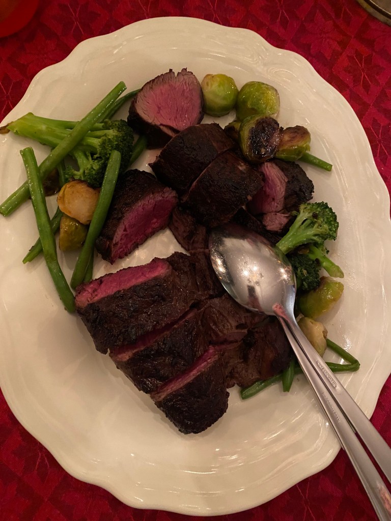 This year we celebrated Christmas with fillet of beef, Hasselbacks potatoes (they’re Swedish you know) and homemade bearnaise sauce and for a little Christmas touch, brussels sprouts with butter and bacon.