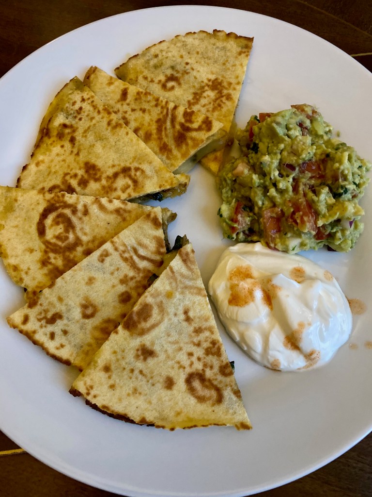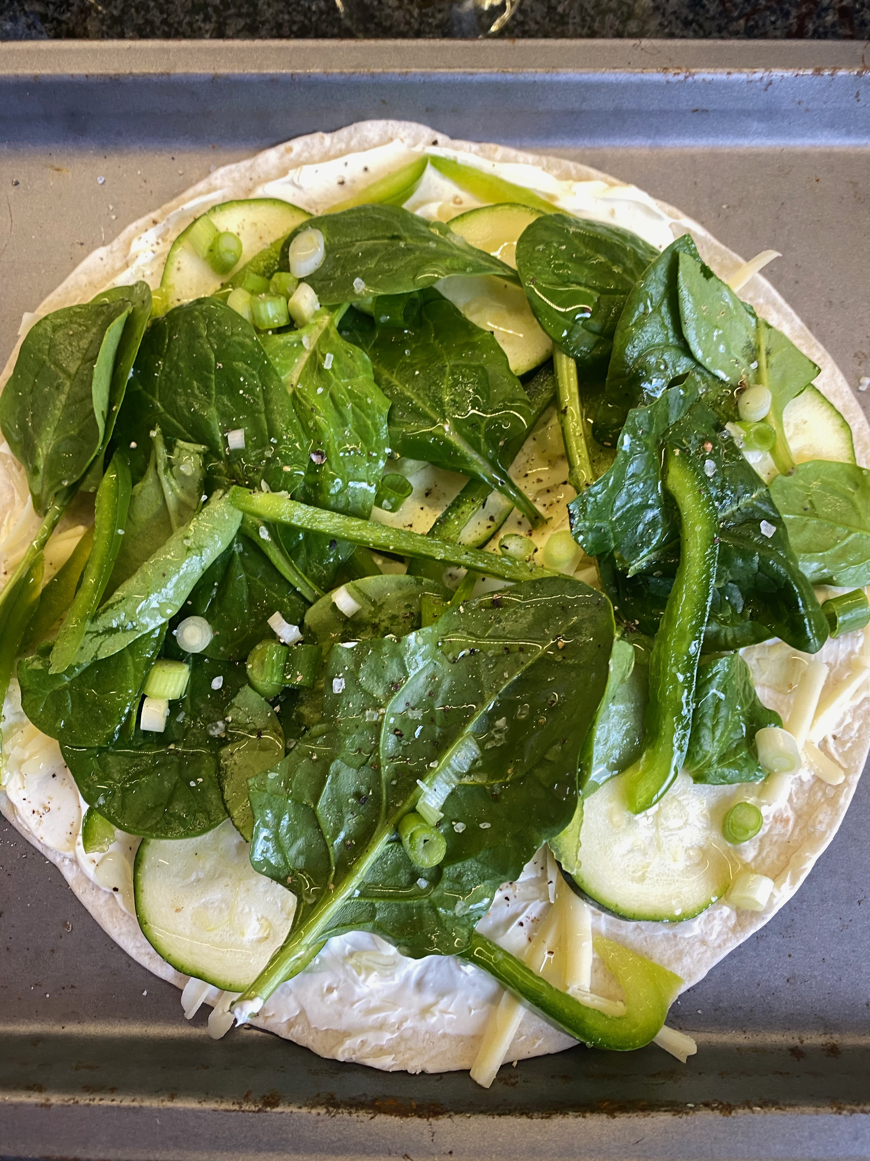 You already know how much I like a tortilla pizza for a speedy weeknight supper, but last weekend I made some green ones (literally and figuratively!) for lunch and they were so good I immediately wanted to share the recipe. And write it down for my own sake too, as it really was a winning combination and such a satisfying lunch!