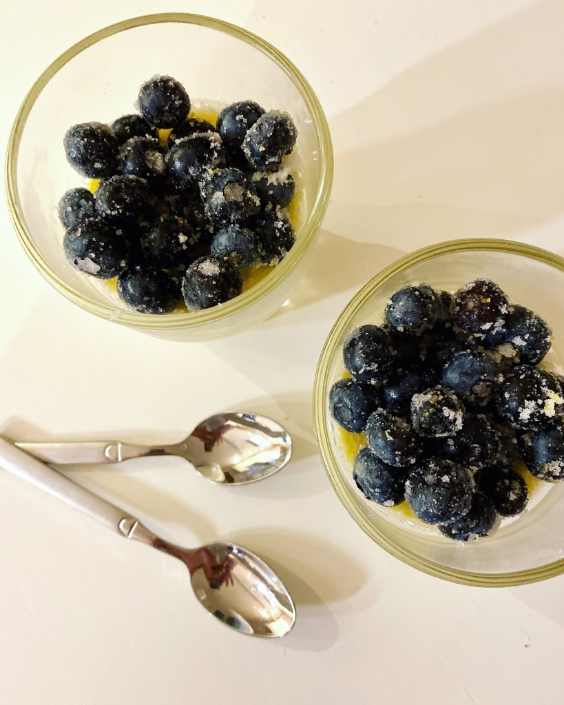 We were actually really full after the first two courses so watched some His Dark Materials before we had pudding. Vanilla pannacotta with blueberries in lemon sugar. Yum!