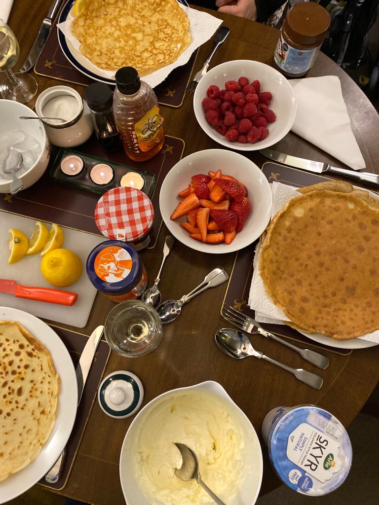 In the evening I got spoiled with pancakes, both savoury and sweet, for Pancake Day.