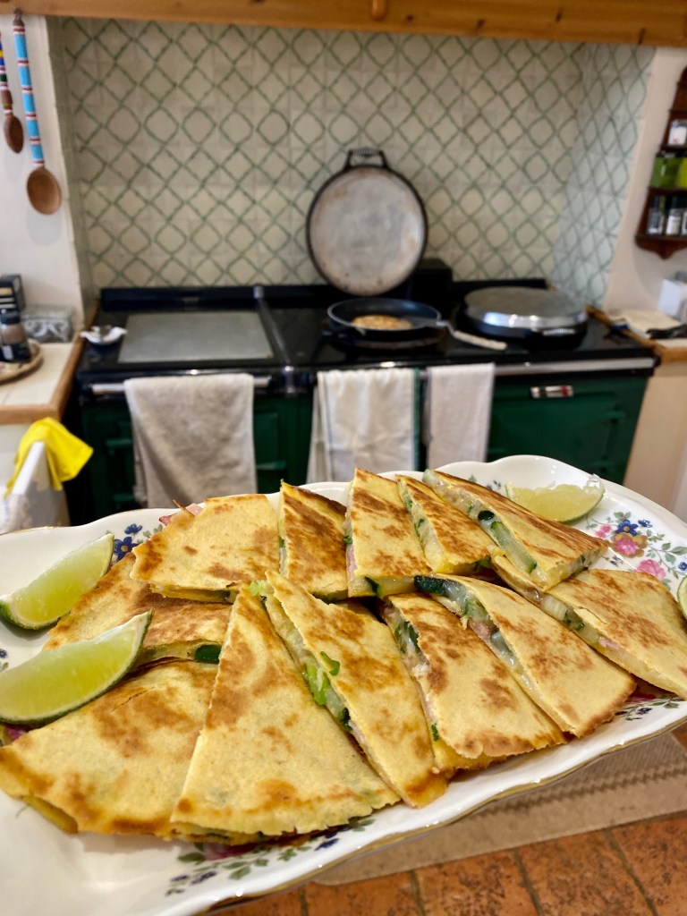 I cooked with courgette a lot during lockdown, as it’s such an inexpensive versatile vegetable. And it turns out, it really works in bulking out your quesadillas.